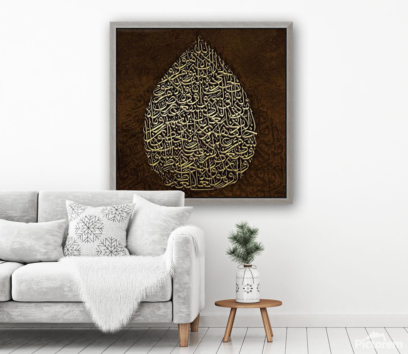 Luxury Islamic Wall Art – Ayatul Kursi in Gold on Brown Canvas (Frame not included)