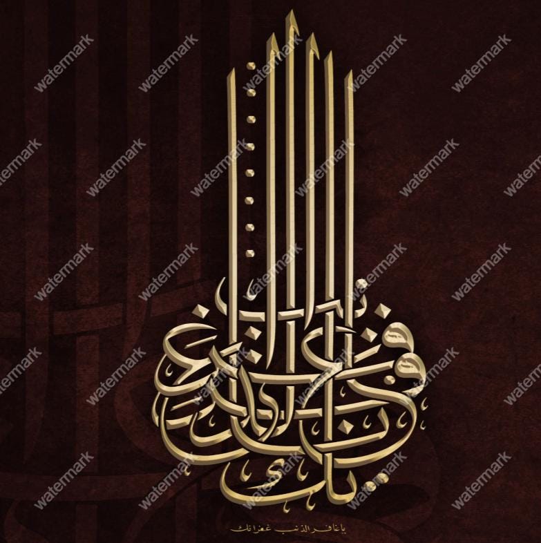 “يا غافر الذنب غفرانك” — “Oh Forgiver of Sins, Your Forgiveness.”