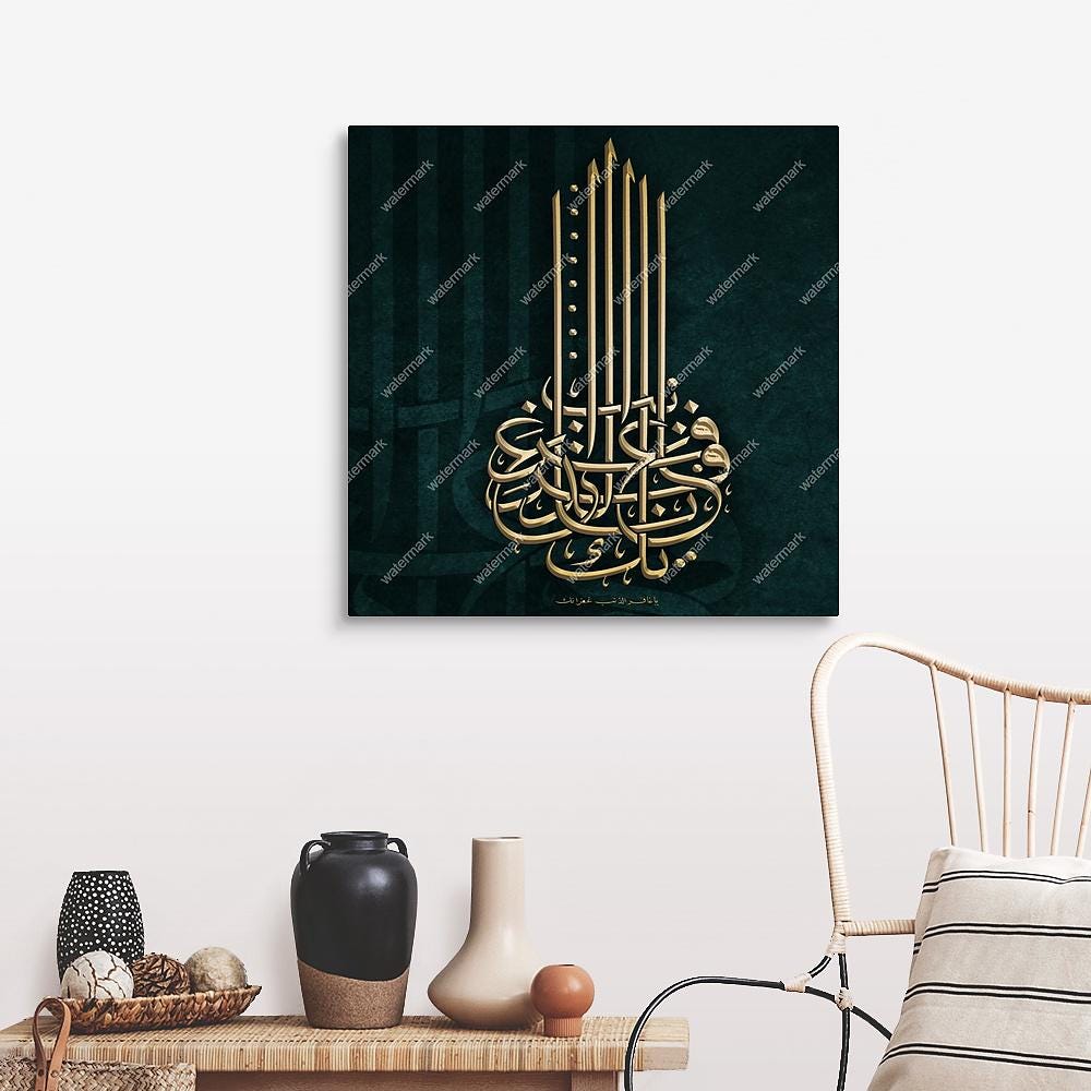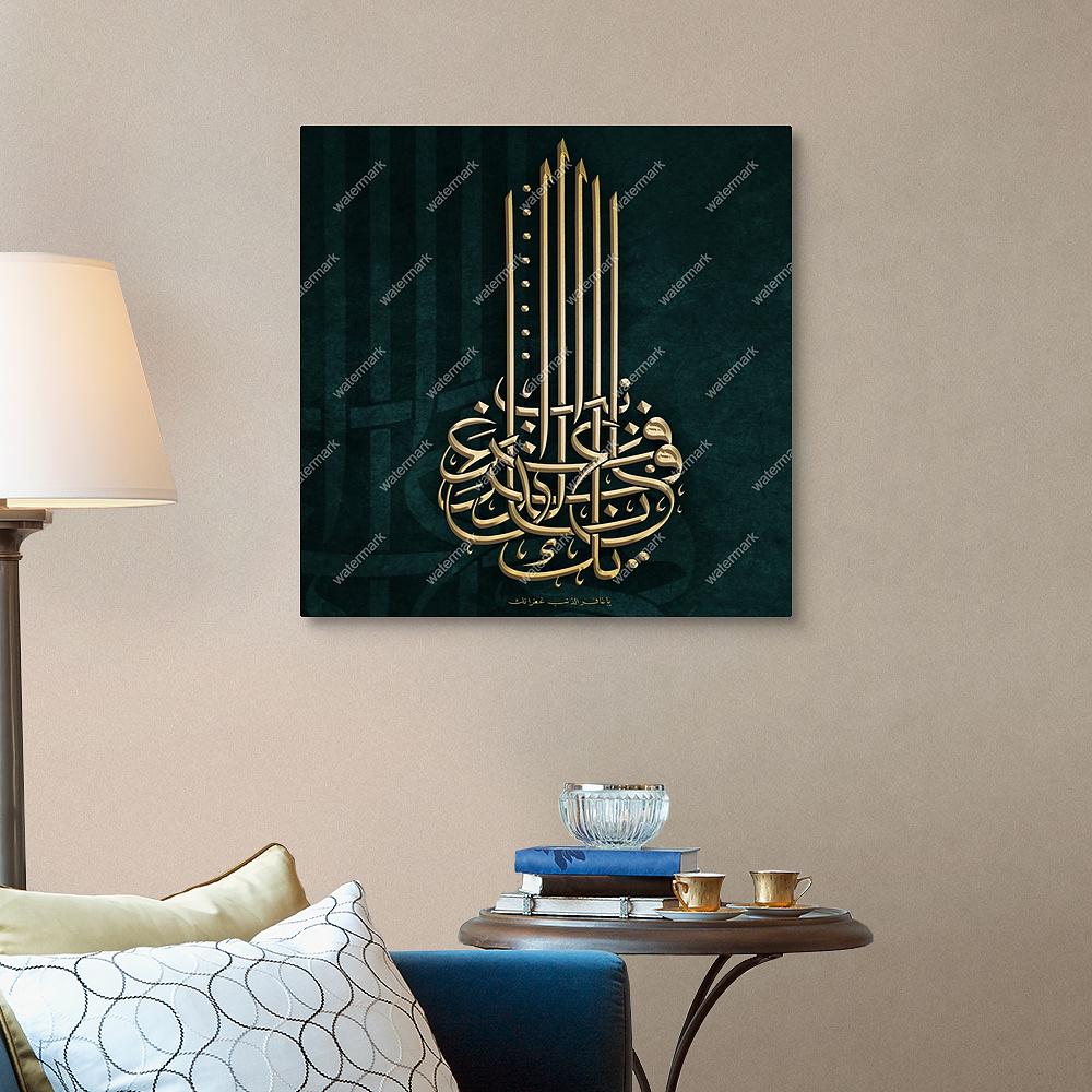 Crafted in elegant Thuluth Arabic script, this vertical design expresses both reverence and humility. The premium calligraphy, rendered in a modern metallic style, is paired with rich textured backgrounds, making it a perfect fit for homes, prayer areas, or as a meaningful Islamic gift.