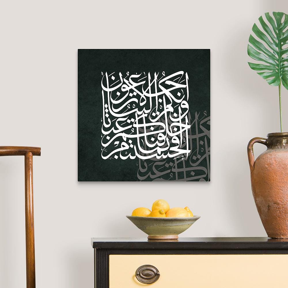Elevate your space with this stunning Arabic calligraphy canvas featuring the profound verse from Surah Al-Mu’minun (23:115). This verse serves as a powerful spiritual reminder that life has meaning and purpose — a timeless message from the Qur’an.