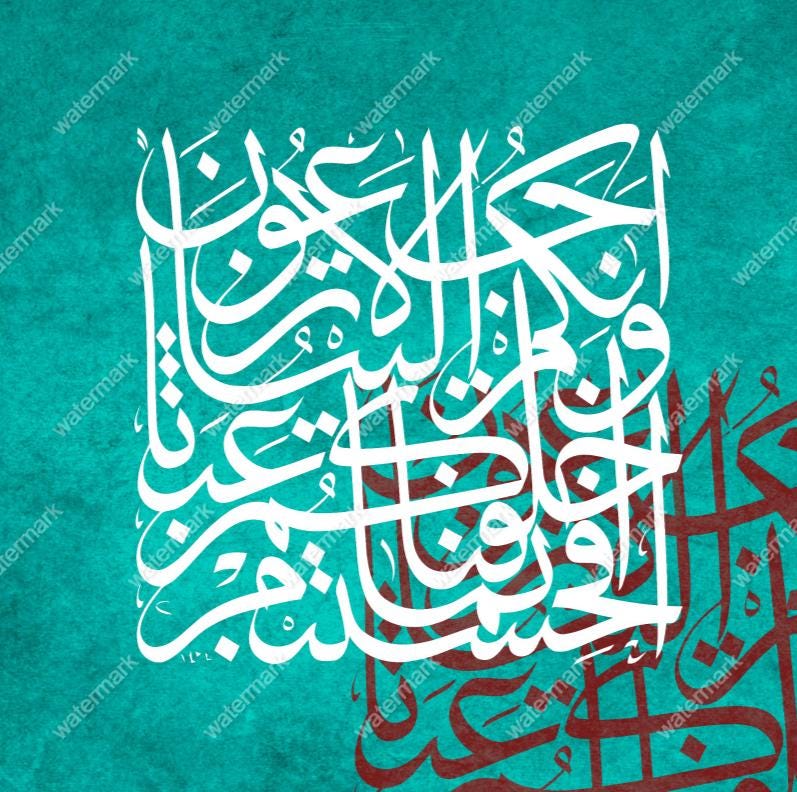 Handcrafted in elegant, modern Kufic/Thuluth calligraphy, this canvas is available in a variety of background colors including emerald green, deep red, navy blue, earthy brown, turquoise, and more — each one carefully designed to complement your home’s aesthetic.