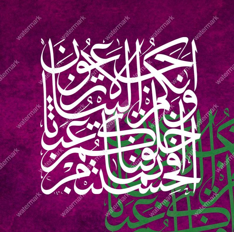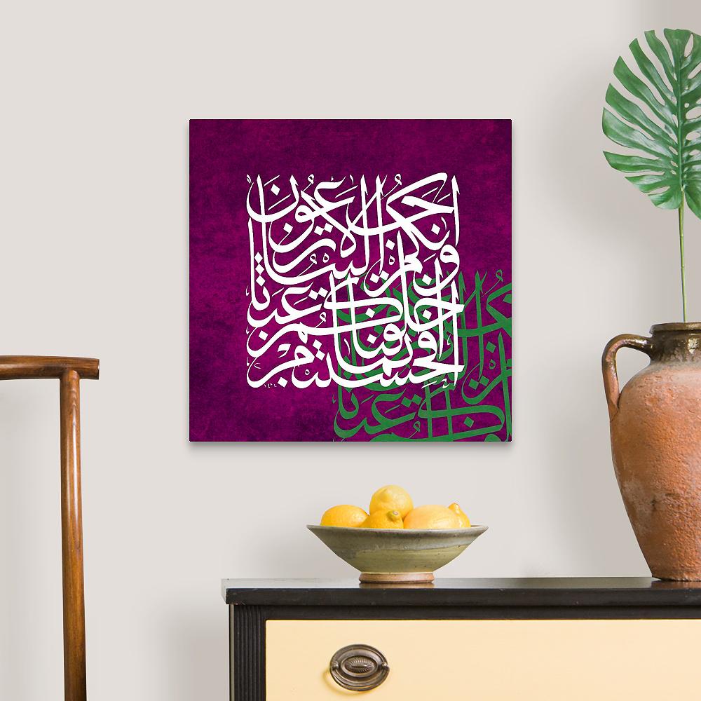 Handcrafted in elegant, modern Kufic/Thuluth calligraphy, this canvas is available in a variety of background colors including emerald green, deep red, navy blue, earthy brown, turquoise, and more — each one carefully designed to complement your home’s aesthetic.