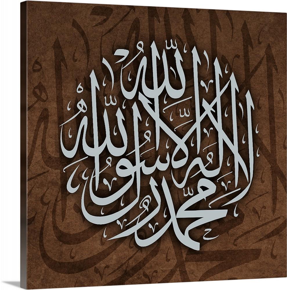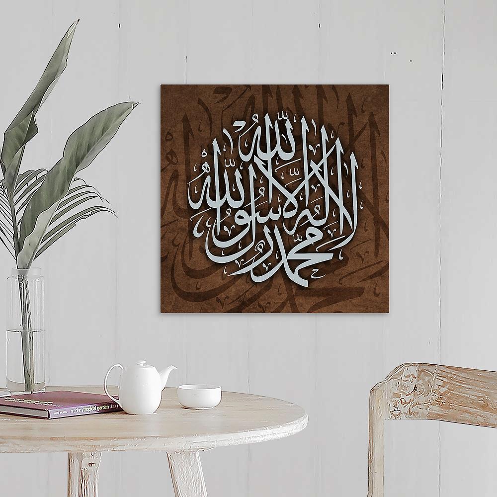 Elevate your décor with this rustic taupe canvas of the Shahada – a refined expression of faith and devotion. Perfect for modern Islamic interiors, this unique piece complements both minimalist and traditional settings.