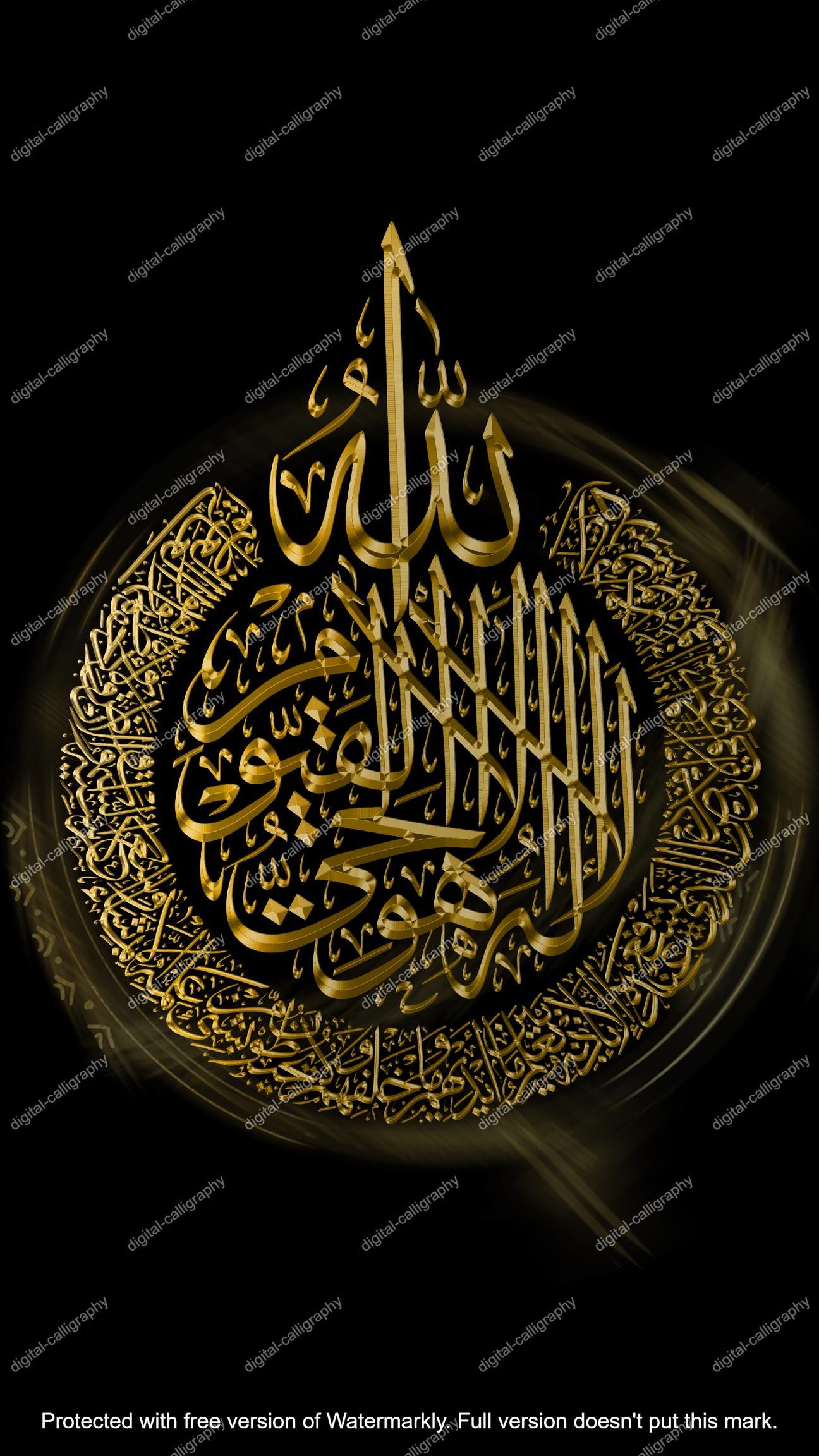 Luxury Islamic Wall Art – Ayatul Kursi Calligraphy on Black Canvas (Frame not included)