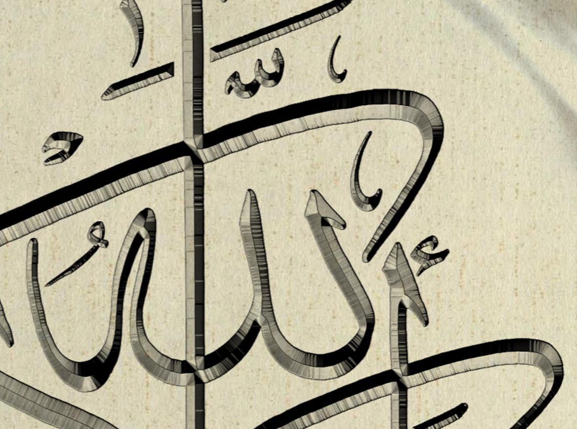 Stunning gold 3D-style Arabic calligraphy on a deep backdrop