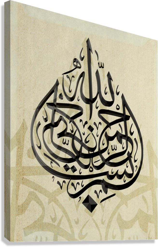 Luxury Islamic Wall Art – Bismilla Calligraphy on Marble-Effect Canvas (Silver Frame not included)