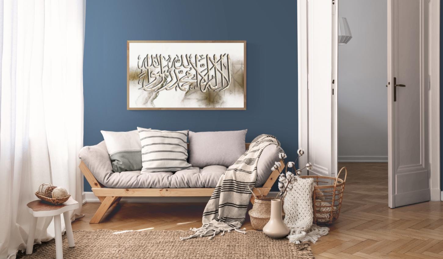 Luxury Islamic Wall Art – Shahada Calligraphy on Marble-Effect Canvas