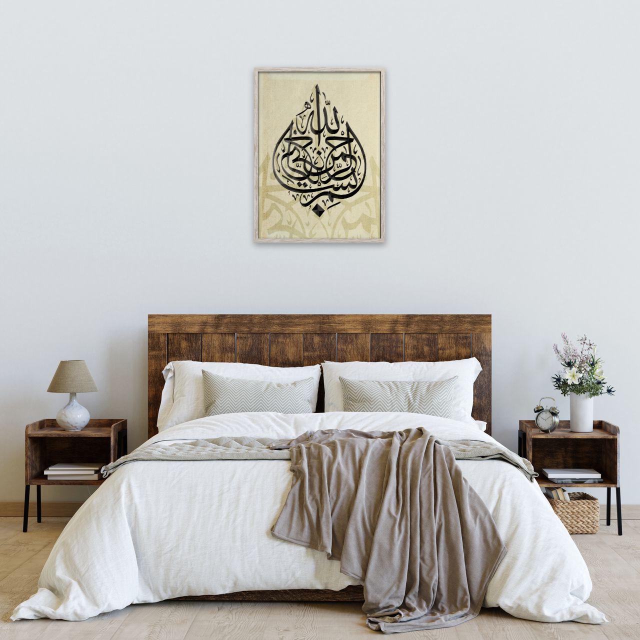 Luxury Islamic Poster Art – Bismilla Calligraphy on Cream Poster (FRAME NOT INCLUDED)