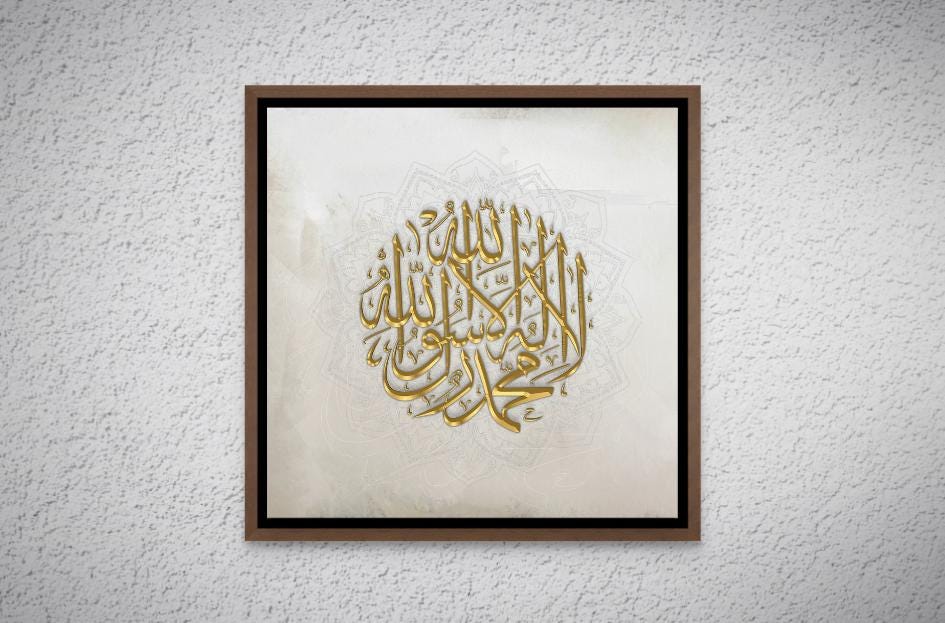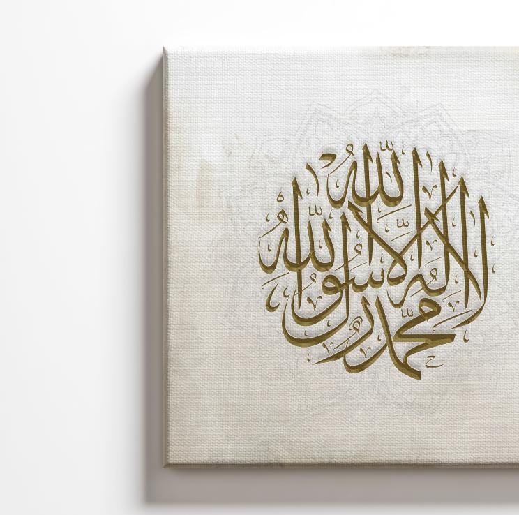 Bring elegance and spirituality into your space with this beautifully crafted Shahada (Islamic declaration of faith) calligraphy on a rich light beige cream canvas. Perfect for Ramadan gifts, Eid decor, or everyday inspiration, this high-quality Islamic wall art adds warmth and meaning to any home, masjid, or office.